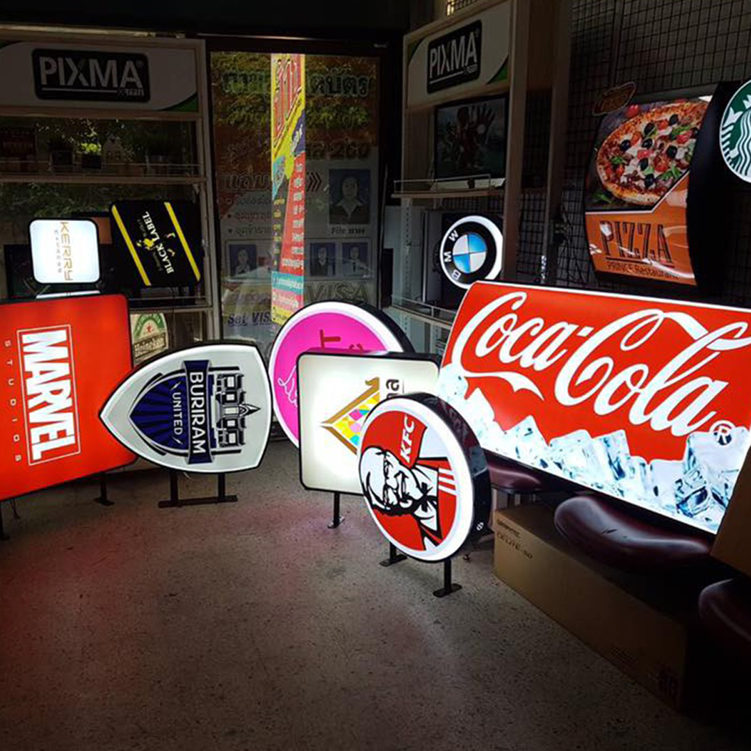 กล่องไฟสามารถสั่งทำได้หลายรูปทรงตามความต้องการของลูกค้า ไม่ว่าจะเป็น 1 หน้า 2 หน้า รูปแบบการยึดขาติดก็สามารถแจ้งทางร้านได้ มาพร้อมกับงานพิมพ์ฟรี