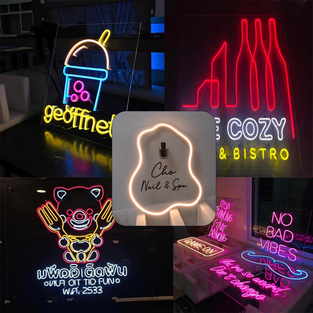 ป้ายไฟนีออนแฟล็ก หรือ นีออนดัด สำหรับลูกค้าท่านที่มีร้านสายมินิมอลไม่ควรพลาด สามารถดัดได้ตามแบบที่ลูกค้าต้องการ มีหลากหลายสีให้ลูกค้าได้เลือก