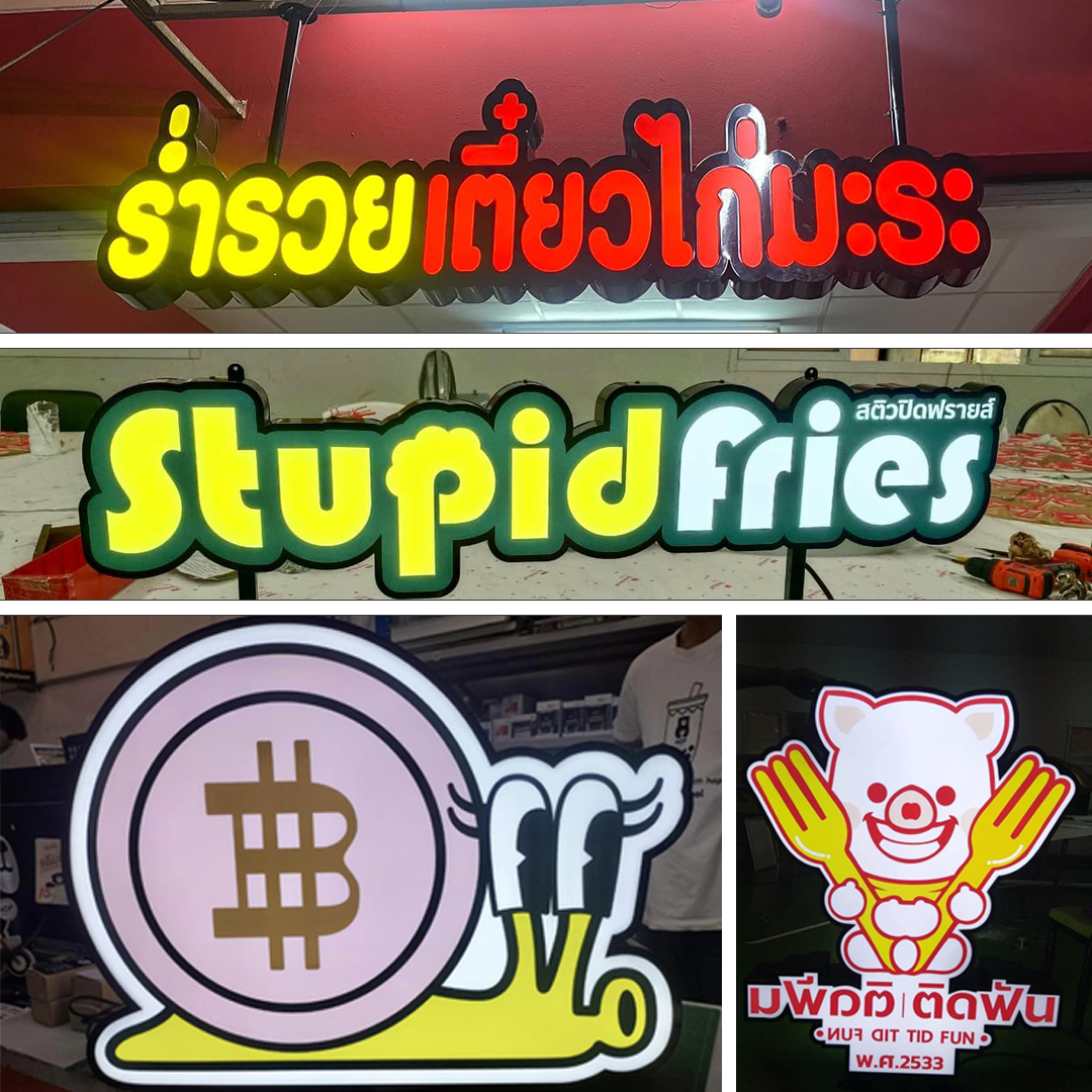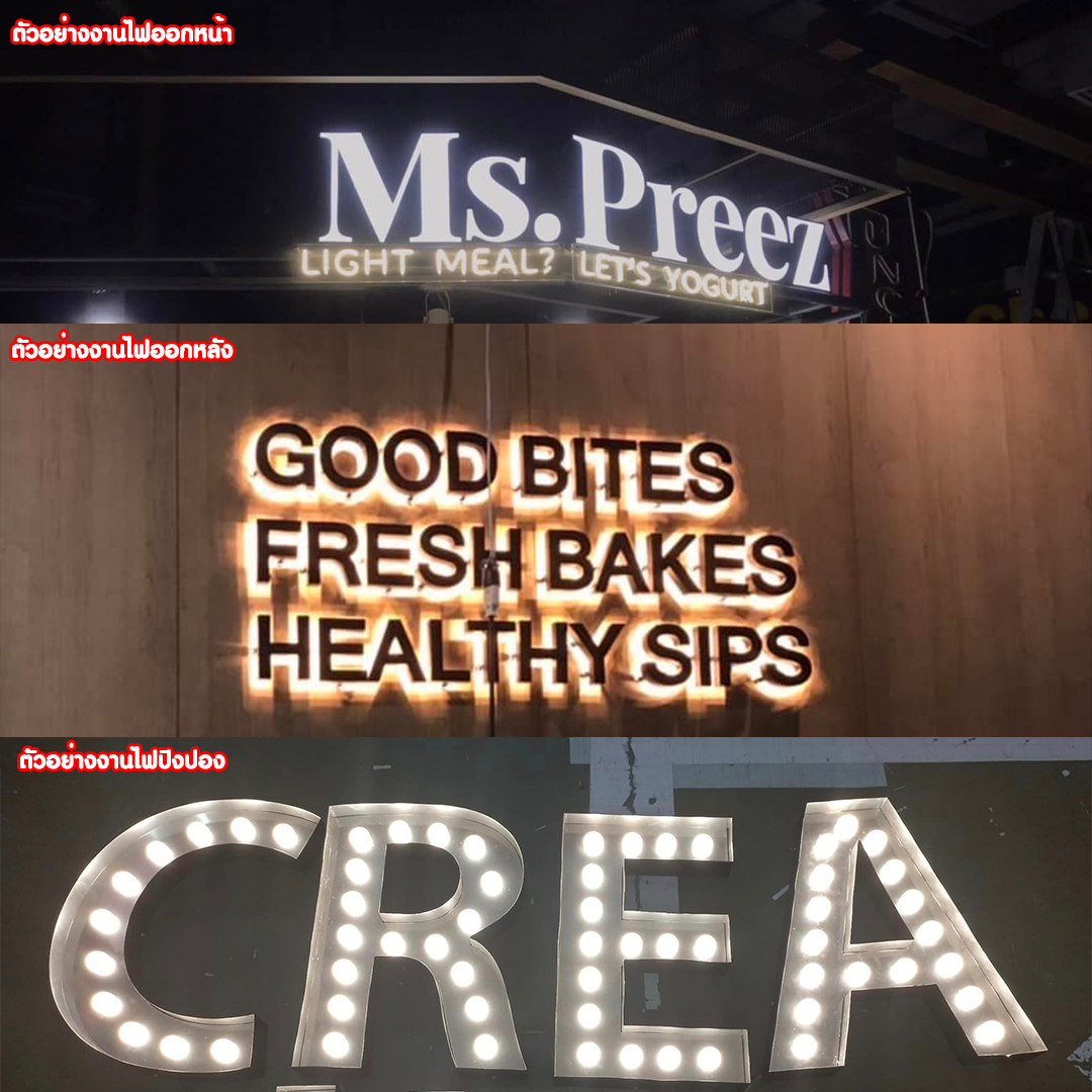 ป้ายไฟอักษร ที่จะทำให้ร้านของคุณโดนเด่น จะมีทั้งแบบไฟอออกหน้า ไฟออกหลัง ไฟปิงปอง และไฟหัวกระสุน อักษรโครงซิงค์ สแตนเลส อะลูมิเนียม สวยกลางวันโดดเด่นยามค่ำคืน